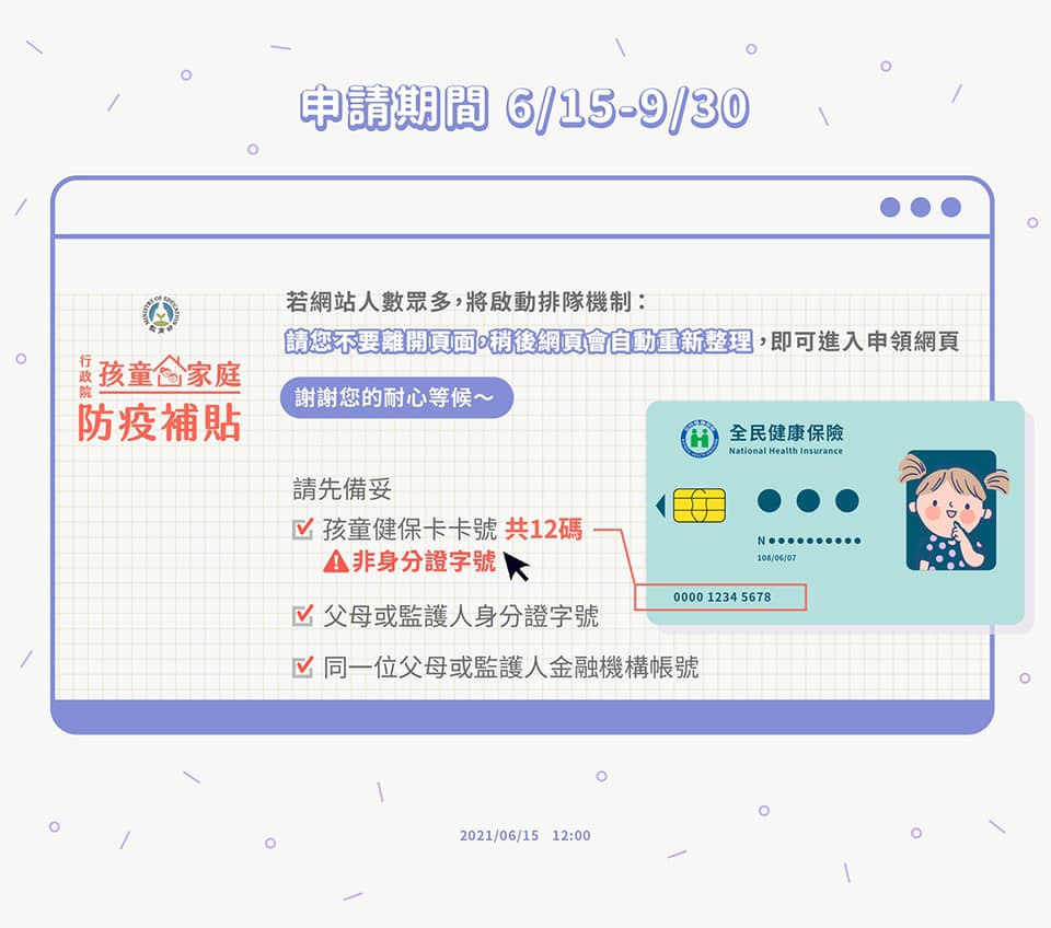 嚴重特殊傳染性肺炎期間關懷照顧孩童家庭防疫補貼作業須知公文Post author:江凱靈Post published:2021 年 6 月 17 日Post category:學校簡介嚴重特殊傳染性肺炎期間關懷照顧孩童家庭防疫補貼作業須知公文嚴重特殊傳染性肺炎期間關懷照顧孩童家庭防疫補貼作業須知相關內容教育部通報1100515配合強化相關防疫措施2021 年 5 月 16 日教育部體育署112年度親水體驗池教學蒞臨澳花國小2023 年 9 月 5 日校園因應『嚴重特殊傳染性肺炎』(武漢肺炎)疫情停課標準2021 年 5 月 23 日
